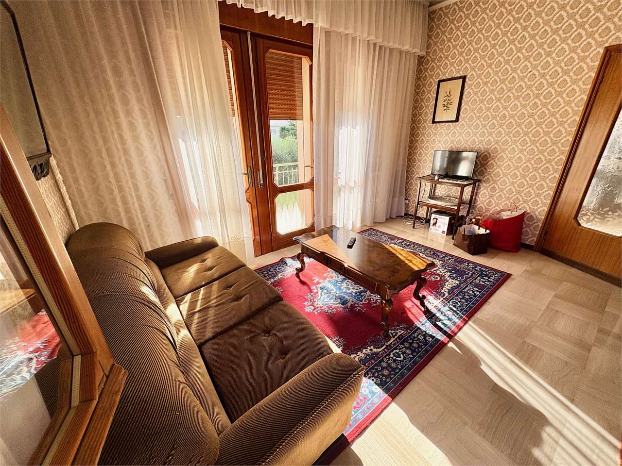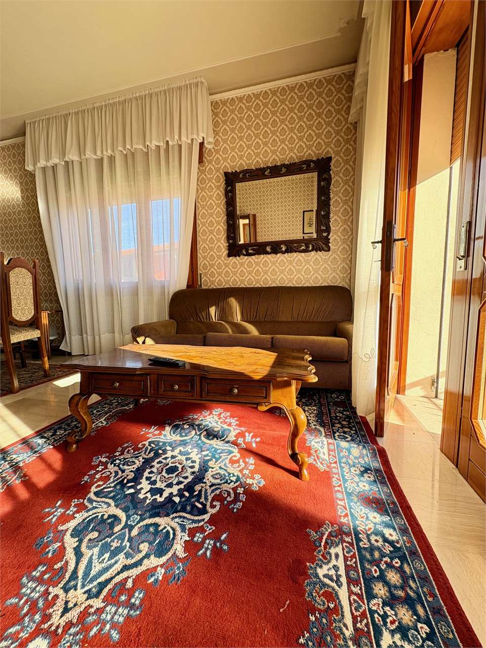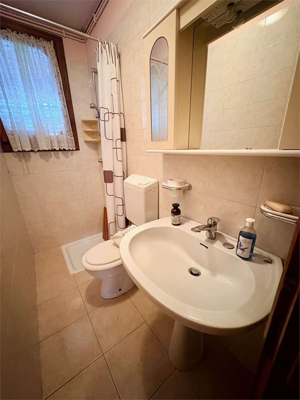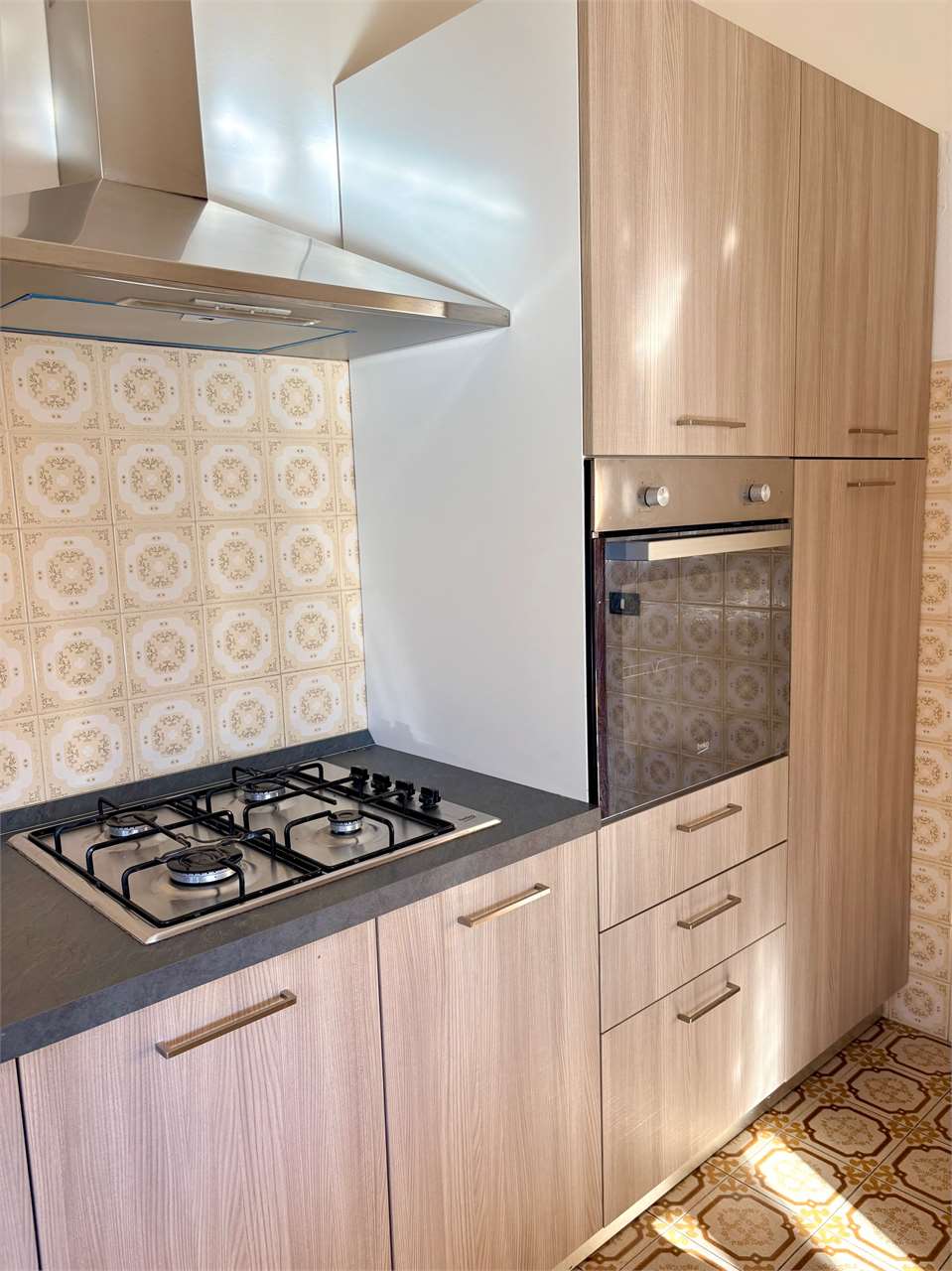 L’abitazione al piano primo, si compone di ingresso, cucina con accesso al terrazzo, soggiorno luminoso, disimpegno, due camere matrimoniali e due bagni. Attraverso una scala interna si accede al piano terra, dove si trovano una grande cantina, un ripostiglio, una lavanderia, una centrale termica, e un ulteriore bagno. La proprietà offre spazi ampi e funzionali.