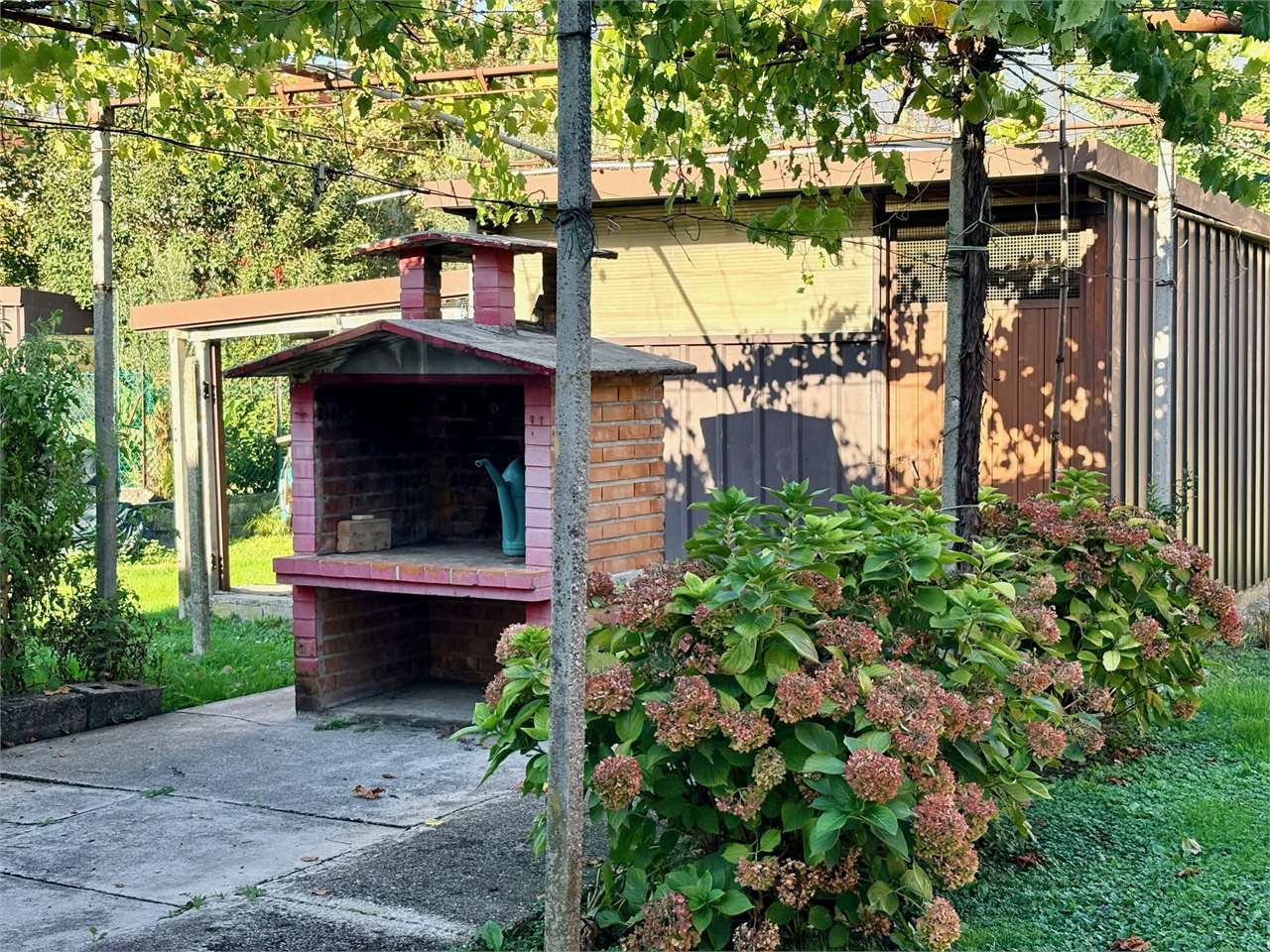 Il giardino, elemento di grande pregio della proprietà, offre spazi ampi e ben curati, arricchiti da alberi da frutto e da un comodo annesso/ripostiglio esterno. L’area esterna è ideale per momenti di relax in famiglia o per pranzi e cene all’aperto durante la bella stagione.