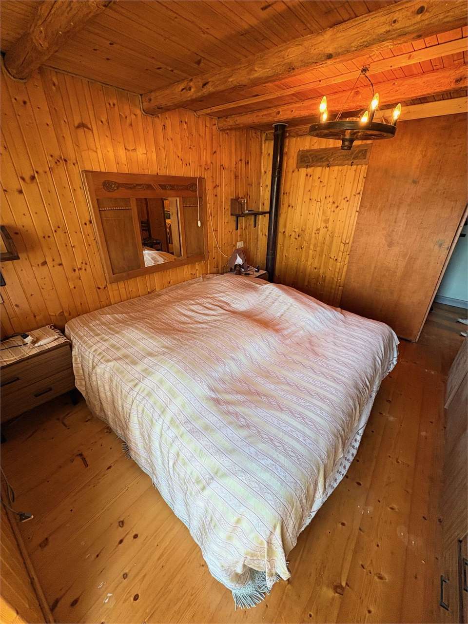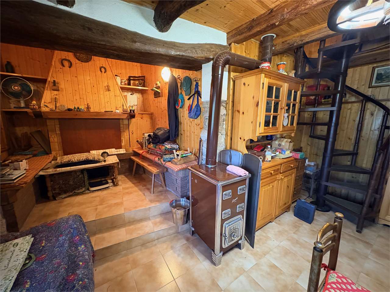 L’immobile si sviluppa su due livelli e si compone di ingresso, zona giorno il vero cuore della casa, con il “tradizionale larin ” la stufa a legna, l’angolo cottura, e il bagno finestrato.
