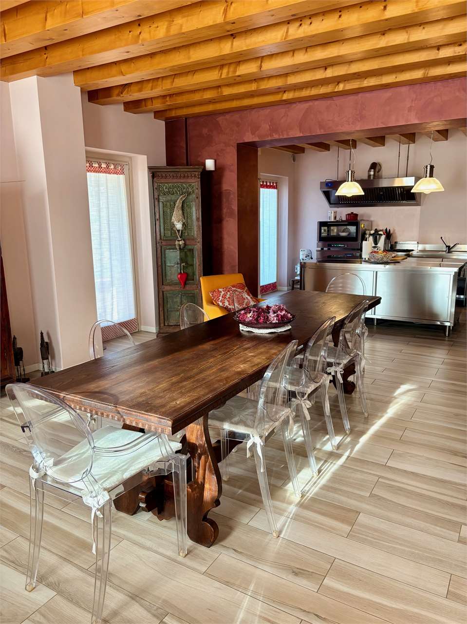 Immersa nelle colline di Vittorio Veneto, patrimonio UNESCO, proponiamo in esclusiva una splendida porzione di rustico finemente recuperata, ideale per chi cerca autenticità e panorami indimenticabili. Circondata dal verde ma a pochi minuti dal centro città. Giardino privato ideale per cene al tramonto e momenti di relax assoluto. Al pianto terra ingresso con ampia zona giorno luminosa, con travi in legno e dettagli che raccontano il sapore di un tempo. Cucina spaziosa con un’isola centrale, non è solo un piano di lavoro, ma diventa punto di aggregazione per un aperitivo mentre finisci di cucinare. Grande tavolo in soggiorno per pranzi veloci o cene in compagnia. Angolo lavanderia e bagno per gli ospiti. Dall’accogliente zona giorno al piano terra, una scala conduce al piano primo, dove troviamo un angolo cottura-soggiorno, zona notte con 2 camere da letto, una matrimoniale e una camera singola e un bagno, un ambiente completo e ben posizionato. Proseguendo all’ultimo piano, la casa si conclude ad una grande soffitta abitabile, un ambiente unico che si distingue per il calore e la sua atmosfera suggestiva. Il soffitto è caratterizzato da una splendida travatura a vista, che dona volume e un tocco di eleganza senza tempo a tutto lo spazio. Grazie alle ampie metrature, questa zona si presta a molteplici usi: area relax, sala giochi, studio artistico o una quarta camera. Completa la proprietà un grande ripostiglio e un bagno.